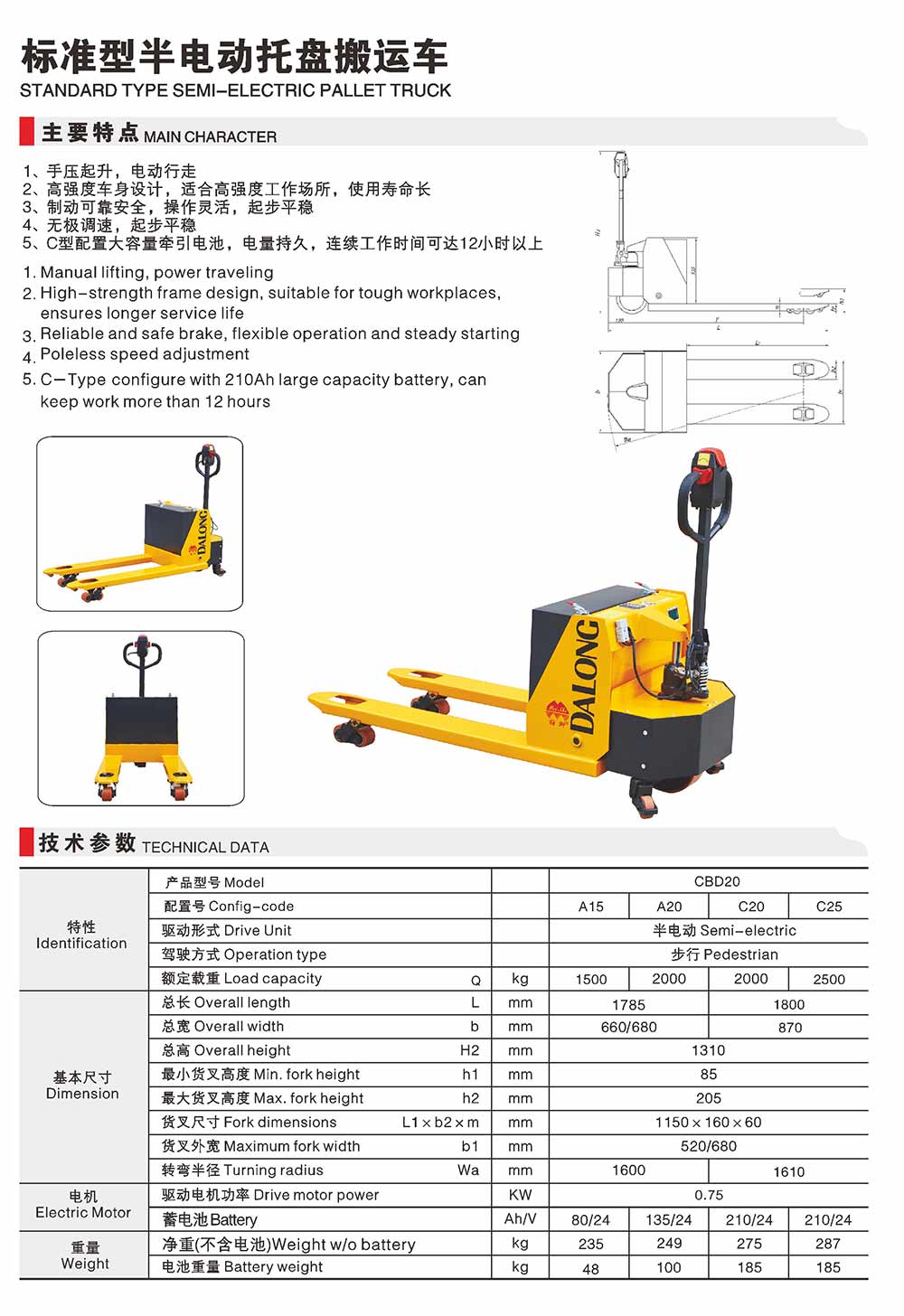 CBDA半電動托盤搬運車